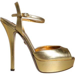Dolce & Gabbana Gold Bette Leather Heels Sandals Shoes