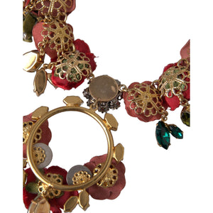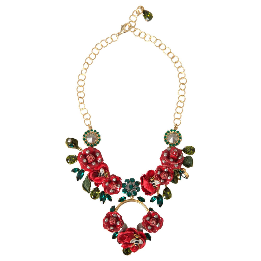 Dolce & Gabbana Gold Brass Link Chain RosePetal Crystal Pendant Necklace