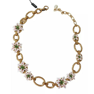 Dolce & Gabbana Gold Brass Oversize Chain LILY Flowers Necklace