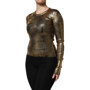 Dolce & Gabbana Gold Round Neck Long Sleeve Pullover Top