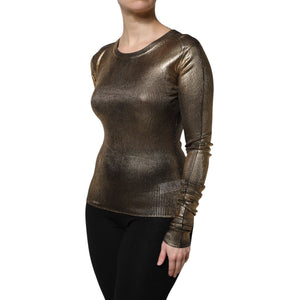 Dolce & Gabbana Gold Round Neck Long Sleeve Pullover Top