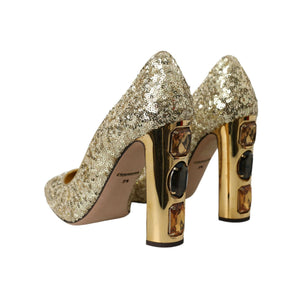Dolce & Gabbana Gold Sequin Crystal Heels Pumps Shoes