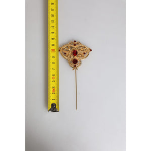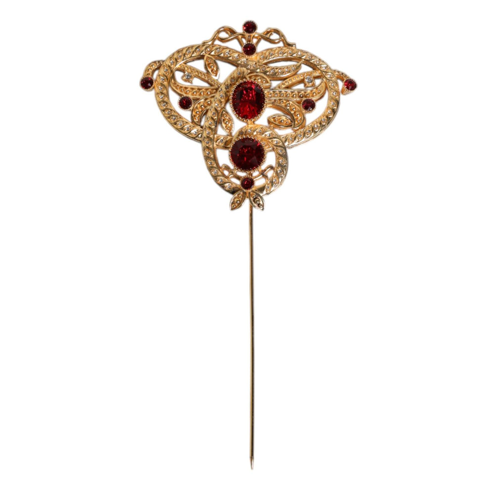 Dolce & Gabbana Gold Tone Red Crystal Embellish 925 Sterling Silver Pin