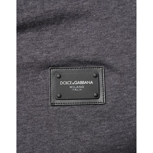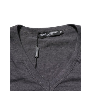 Dolce & Gabbana Grey Cotton V-Neck Logo Plaque Melange T-Shirt