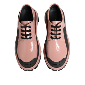Dolce & Gabbana Light Powder Pink Black Leather Lace-Up Shoes