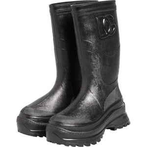 Dolce & Gabbana Metallic Black Pull On Rain Boots Men Shoes