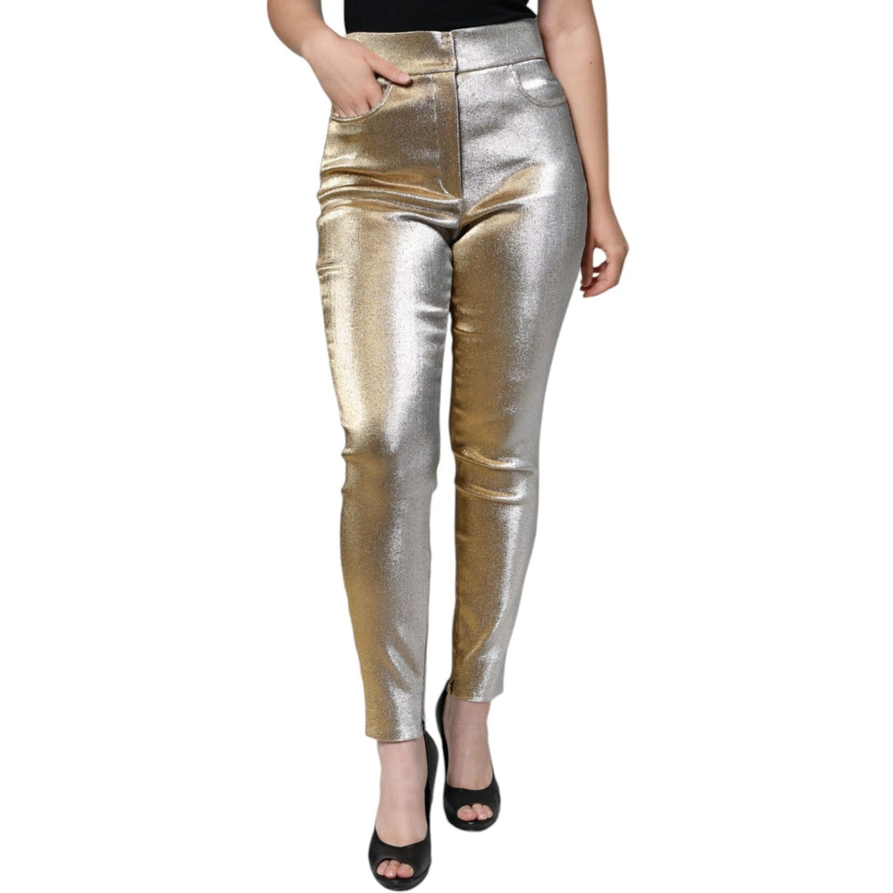 Dolce & Gabbana Metallic Gold High Waist Skinny Pants