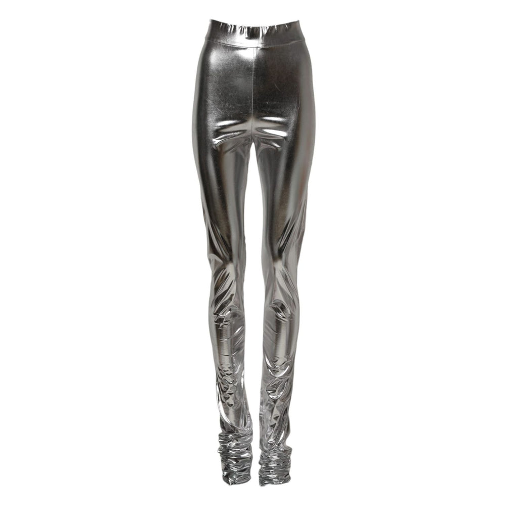 Dolce & Gabbana Metallic Silver Polyester Slim Fit Leggings Pants