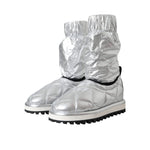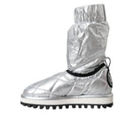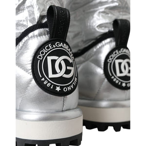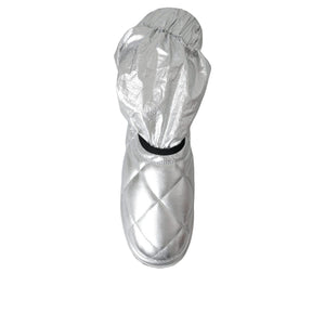 Dolce & Gabbana Metallic Silver Quilted Logo Patch Boot Shoes