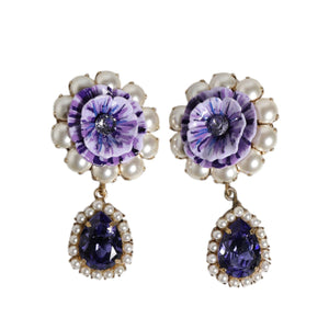 • Dolce & Gabbana Purple Flower Pearl Teardrop Crystals Clip On Earrings