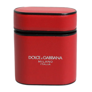 • Dolce & Gabbana Red Calfskin Leather Logo Print Flip Holder Airpods Case