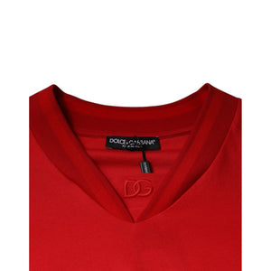 Dolce & Gabbana Red Cotton V-neck Short Sleeves T-shirt