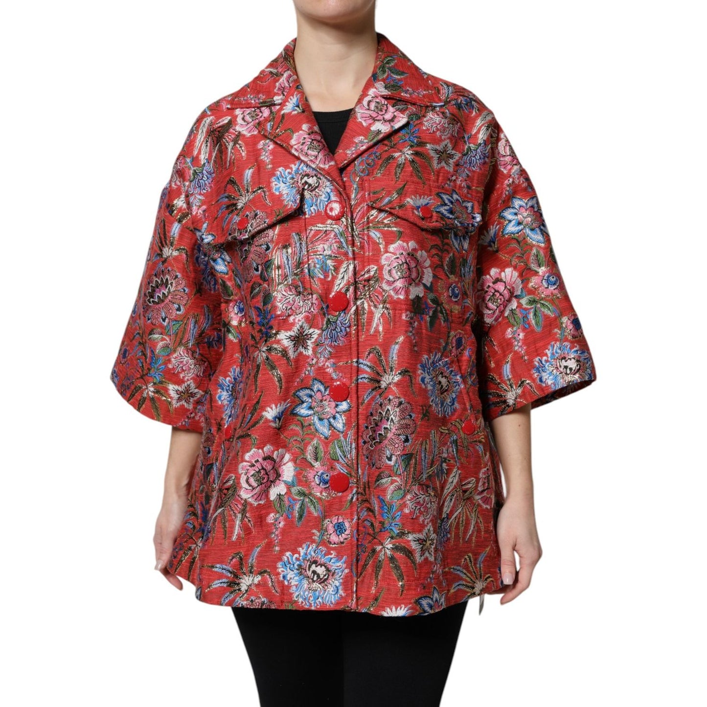 Dolce & Gabbana Red Floral Jacquard Button Down Coat Jacket