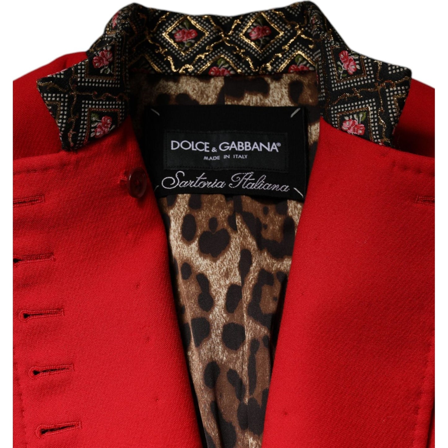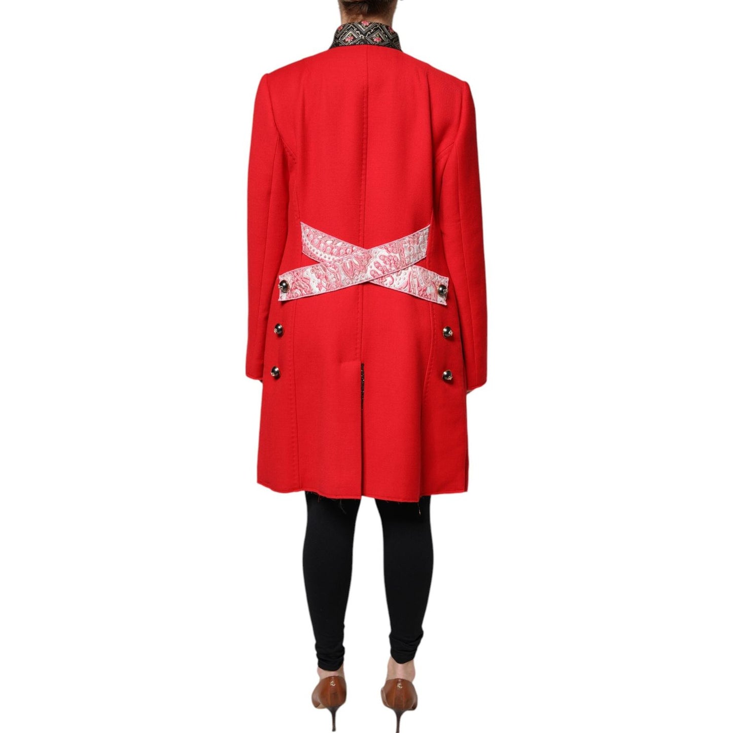 Dolce & Gabbana Red Jacquard Wool Women Trenchcoat Jacket