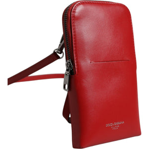 Dolce & Gabbana Red Leather Purse Phone Sling Crossbody Neck Strap Bag