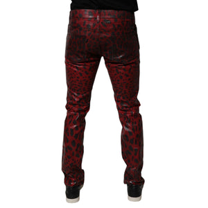 Dolce & Gabbana Red Leopard Cotton Skinny Men Denim Jeans