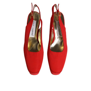 Dolce & Gabbana Red Platform Slingback Heels Sandals Shoes