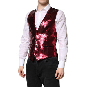 Dolce & Gabbana Red Sequined Dress Formal Men Waistcoat Vest