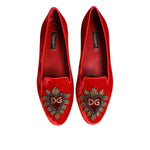 Dolce & Gabbana Red Velvet DG Heart Loafers Flats Shoes
