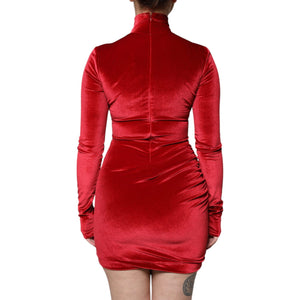 Dolce & Gabbana Red Velvet Long Sleeves Bodycon Mini Dress