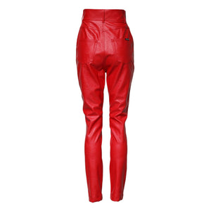 Dolce & Gabbana Red Viscose High Waist Tapered Trouser Pants