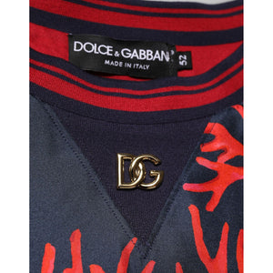 Dolce & Gabbana Silk Navy Red Coral Print Pullover Sweater