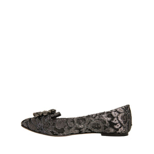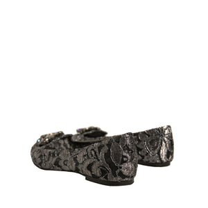 Dolce & Gabbana Silver Crystal Loafer Lace Ballet Flats Shoes