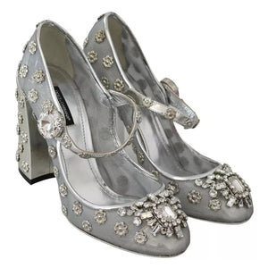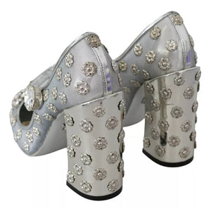 Dolce & Gabbana Silver Crystal Studs Heels Mary Janes Pumps Shoes