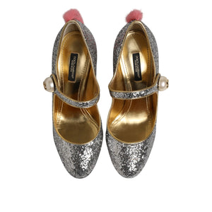 Dolce & Gabbana Silver Glitter Mink Fur VALLY Pumps Shoes