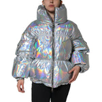 Dolce & Gabbana Silver Iridescent Puffer Full Zip Coat Jacket