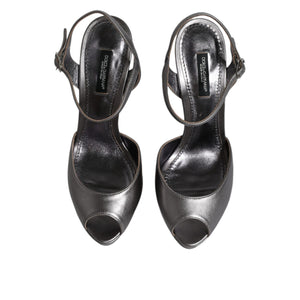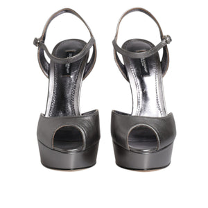 Dolce & Gabbana Silver Leather Platform Heels Sandals Shoes