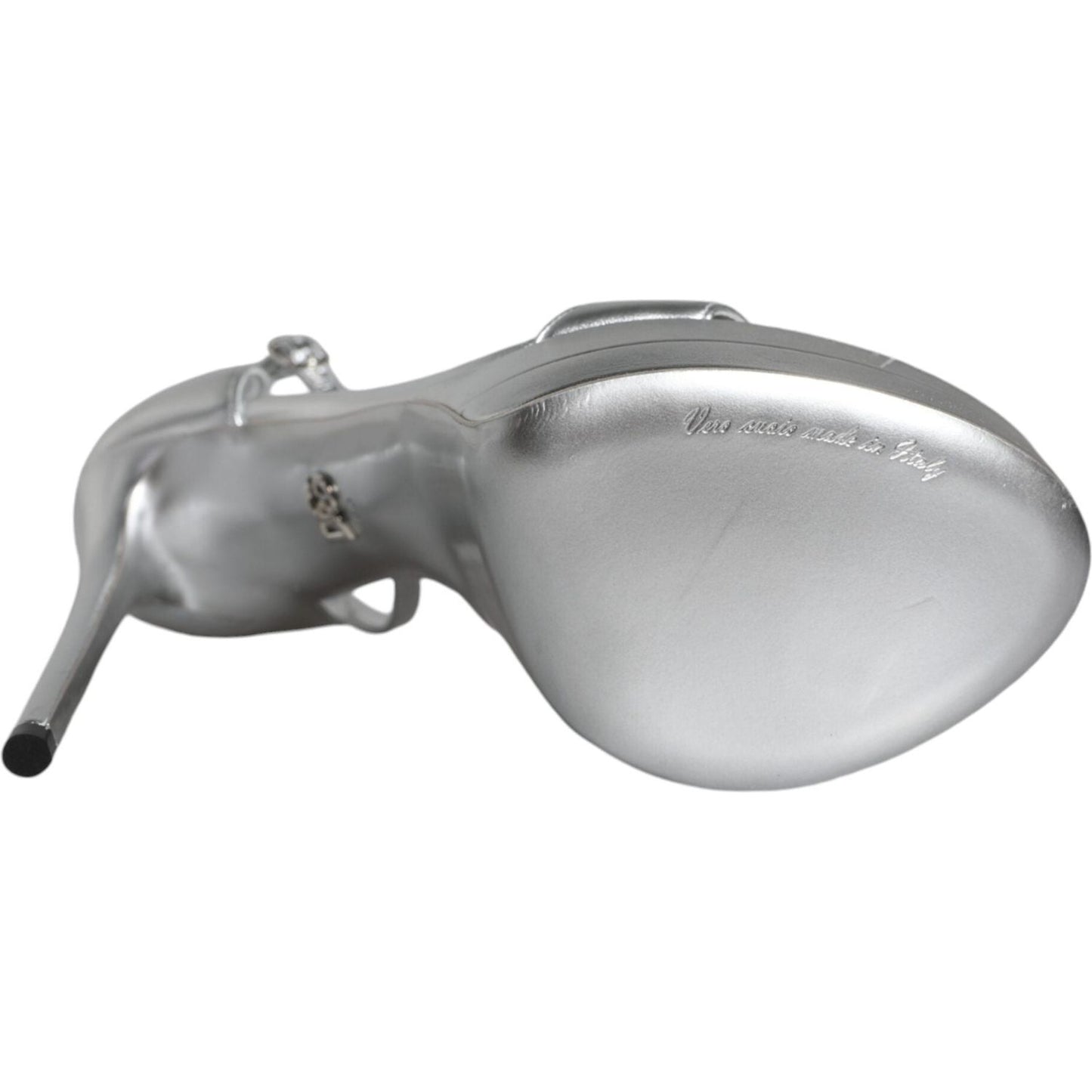 Dolce & Gabbana Silver Leather Platform Keira Sandals Shoes