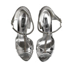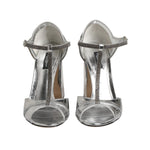 Dolce & Gabbana Silver Leather T-strap Heels Sandals Shoes