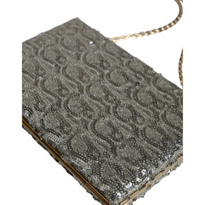 Dolce & Gabbana Silver Sequined Clutch Evening Crossbody Bag