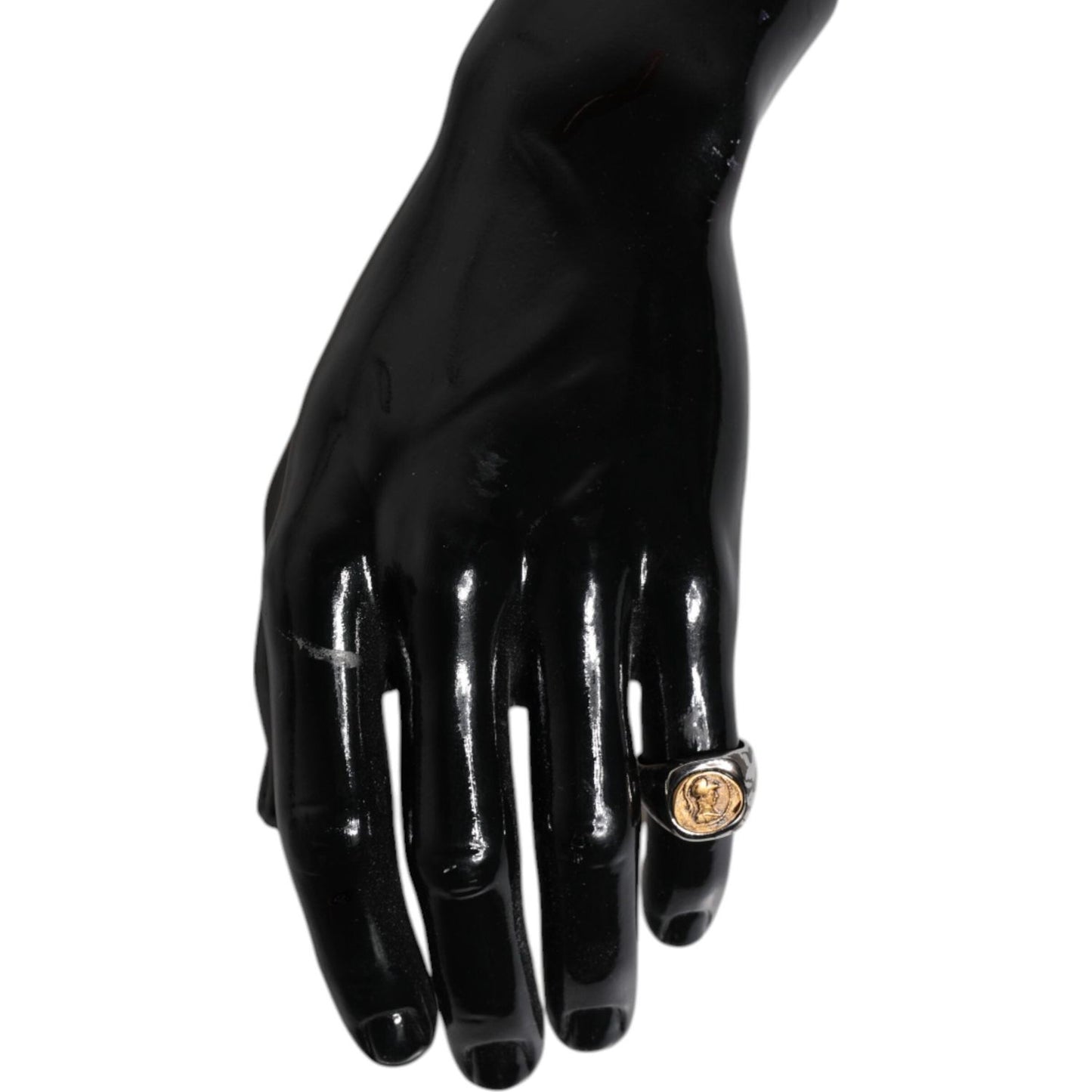 Dolce & Gabbana Silver Tone Engraved Two Color Real Brass Ring