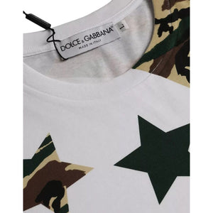 Dolce & Gabbana White Camouflage Stars Crew Neck Men T-shirt