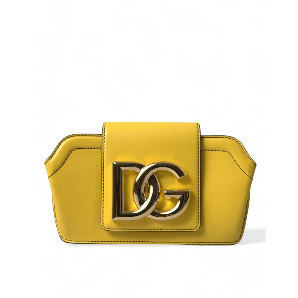 Dolce & Gabbana Yellow Smooth Leather DG Logo Clutch Crossbody Case Bag