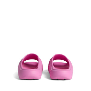 pink embossed logo to the front maple leaf motif open toe slip-on style moulded footbed flat rubber sole Rubber slides Size and Fit - Heel 1,6 in / 4 cm; Platform 1 in / 2,5 cm