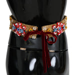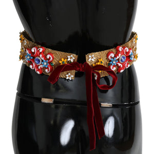 Dolce & Gabbana Embellished Floral Crystal Wide Waist Golden Belt