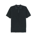 dark grey short front button fastening short sleeves straight hem Ribbed polo shirt Size and Fit - This piece fits true to size. We recommend you get your regular size. Model is 1,84m / 6ft 1in wearing size M