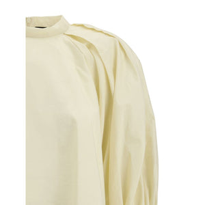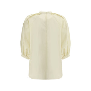 Fabiana Filippi’s cotton Blouse is an elegant and refined garment made from soft cotton for superior comfort. The high neck lends a sophisticated touch, while the back zipper ensures a discreet and perfect closure. The balloon sleeves, with pleats, give volume and movement, creating an interesting contrast with the simplicity of the blouse body. This design combines classic and contemporary elements, making the blouse ideal for elegant and versatile looks perfect for any occasion.