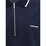 Cotton polo shirt by Ferragamo has a refined and contemporary design. The classic collar is defined by a contrasting profile, while the zipper front closure adds a modern touch. The iconic Ferragamo monogram, embroidered in contrast on the chest, signs the garment with discreet elegance. Ideal for polished yet casual looks.
