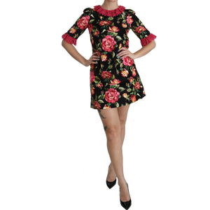 Dolce & Gabbana Floral Pink Lace A-Line Shift Mini Dress