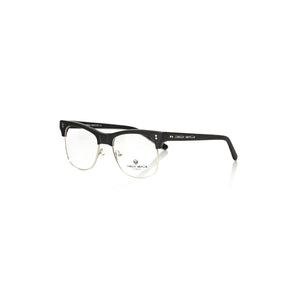 • Frankie Morello Black Metallic Unisex Eyeglass Frame with acetate and metal design.
