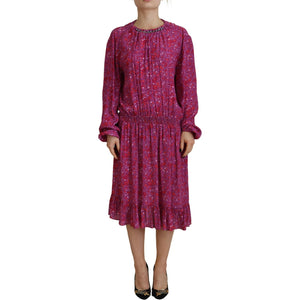 Dsquared² Fuchsia Stars Embellished Long Sleeves Dress