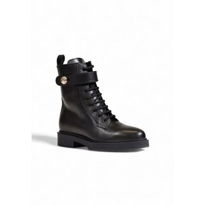 The Furla SFERA ARMY BOOT T.25 YI46SFE women’s combat boots are the perfect choice for those seeking a blend of contemporary style and artisanal quality. Crafted entirely from premium leather, these boots feature a sturdy yet refined silhouette with a thick, stable sole for comfort and durability. The design is enhanced by a lace-up closure and a decorative metal button strap, adding a distinctive and modern touch. Ideal for facing the colder seasons with personality, these Furla boots are versatile and suitable for both casual and more sophisticated looks.