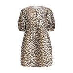 Ganni’s Leopard Mini Dress is a bold and sophisticated piece, perfect for those who like to stand out with elegance. The balloon sleeves and crew neck give a romantic touch, while the cut-out details on the front, decorated with bows, add an element of surprise and originality. A dress that combines the strength of animal print with delicate details for a unique and feminine look.