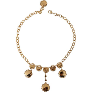 Dolce & Gabbana Gold Clock Statement Crystal Chain Necklace