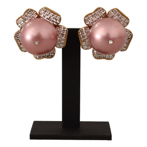 Gorgeous brand new with tags, 100% Authentic Dolce & Gabbana Earrings was made a model of light gold-colored metal. The flower-shaped piece is covered with miniature shimmering crystals, and a large faux pearl has replaced the core.