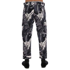 Dolce & Gabbana Gray Banana Leaf Cotton Pants